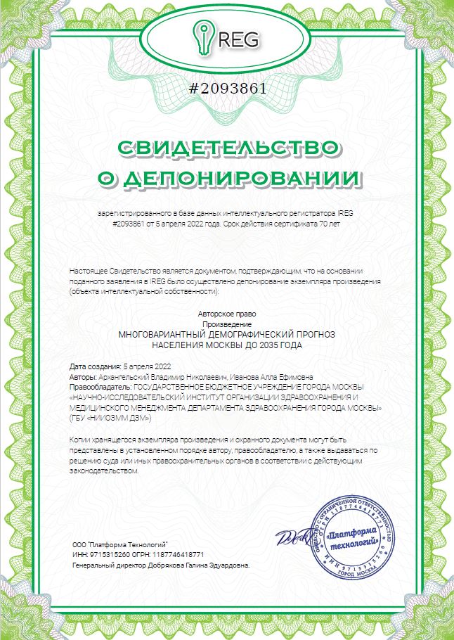 | 46 | Многовариантный демографический прогноз населения Москвы до 2035 года | Произведение науки | 2093861 | 05.04.2022 |