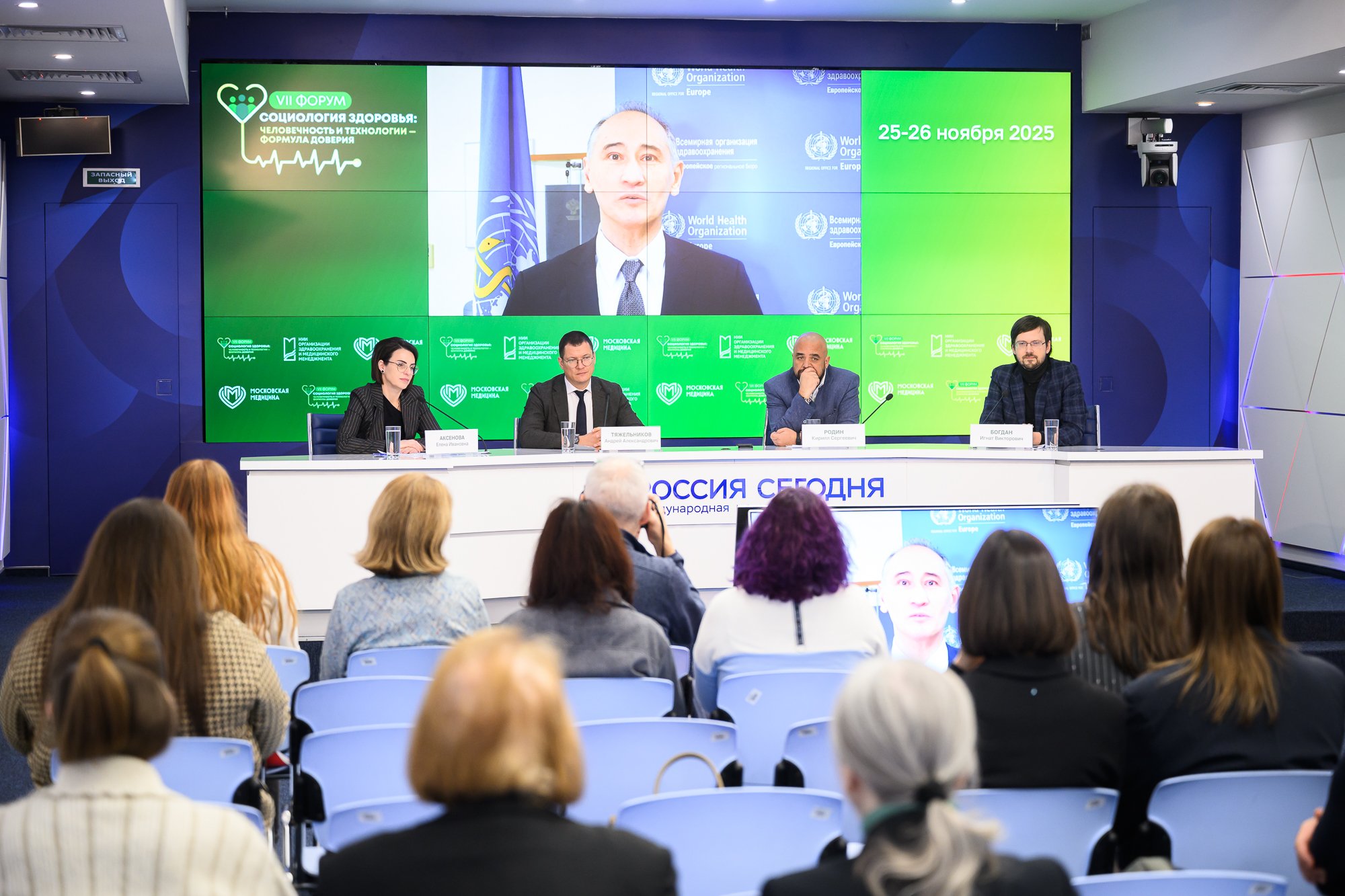 Выступили Батыр Бердыклычев – представитель Всемирной организации здравоохранения в России, Вячеслав Локосов – директор Института социально-экономических проблем народонаселения ФНИСЦ РАН, Кирилл Родин – директор по работе с органами государственной власти ВЦИОМ, Андрей Тяжельников – главный внештатный специалист по первичной медико-санитарной помощи взрослому населению Москвы.