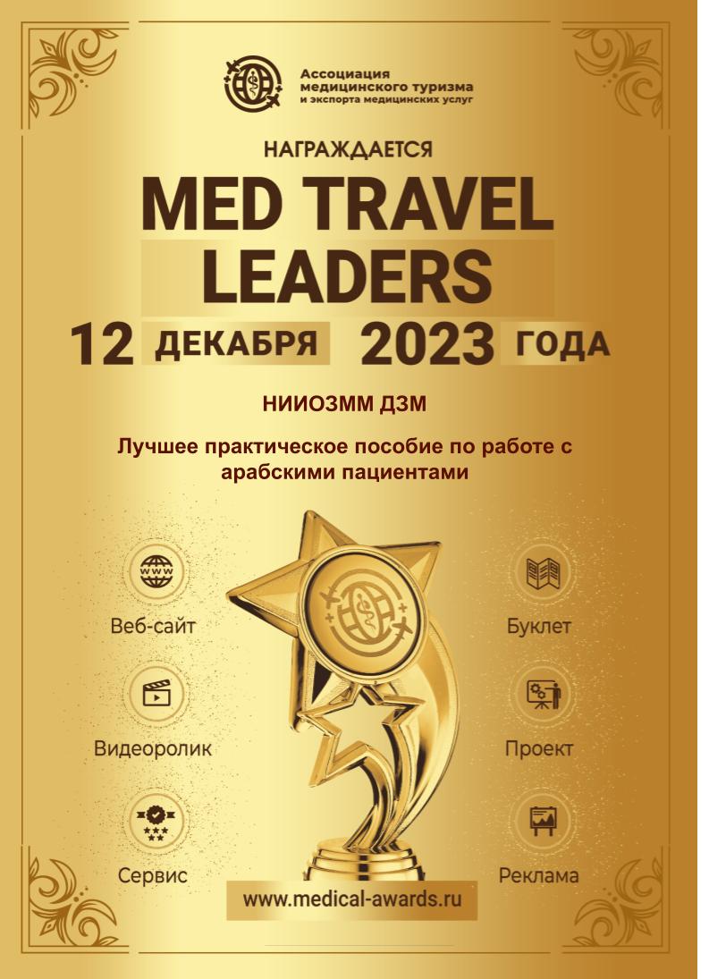 Наибольшее число наград конкурса получил НИИ организации здравоохранения и медицинского менеджмента Департамента здравоохранения города Москвы: «Лучшее практическое пособие по работе с арабскими пациентами», «Лучшая серия международных конференций по медицинскому туризму», «Лучшее пособие по комплексной оценке уровня реализованности экспортного потенциала системы здравоохранения субъекта», «Лучший сборник алгоритмов и регламентов по организации работы с иностранными пациентами».