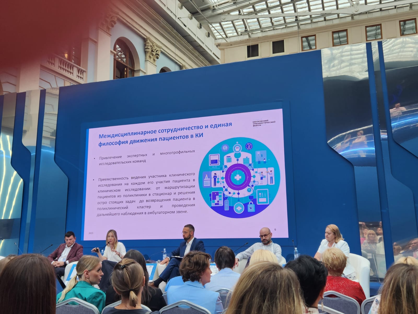 9 августа 2023 года в рамках Московского урбанистического форума (МУФ-2023) заведующий организационно-методическим отделом (ОМО) по клинической фармакологии НИИ организации здравоохранения и медицинского менеджмента ДЗМ, член МГЭК Кузнецова Елена Викторовна, главный внештатный специалист по клинической фармакологии ЗелАО Москвы, член МГЭК Каменева Татьяна Рудольфовна приняли участие в Панельной дискуссии. Встреча была посвящена теме «Тренды клинических исследований: вектор развития в текущих условиях» и состоялась с участием ведущих специалистов Москвы в области проведения клинических исследований.